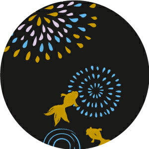 Fireworks: the image of fireworks reflected on the surface of the water, and gold fish overlapping the water crests.